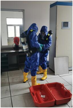 泄氯應(yīng)急操作演習(xí)事前并未提前通知相關(guān)人員,系人工觸動泄氯報(bào)警裝置,警鈴響起后,三灣運(yùn)轉(zhuǎn)值班人員立即到達(dá)氯氣車間,泄氯回收裝置已自動開啟,同時(shí)通知水廠和三灣凈化班組,穿著連體防護(hù)服并佩戴好壓縮空氣呼吸器,三灣凈化班組值班人員佩戴活性炭防護(hù)面罩到達(dá)氯氣車間參與應(yīng)急搶修。